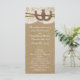 Die rustikale Kraft-, Spitzen- und Hufeisenkollektion ist ein atemberaubendes Design mit einem schönen rustikalen Kraft-Papiereffekthintergrund mit einem romantischen, Vintagen, weißen Spitzen-Effekt-Trim, der mit zwei glücklich miteinander verflochtenen Hufeisen und Schweinen vollendet wurde. Diese Programme können für Ihren besondere Anlass personalisiert sein und würden die perfekte Vorlage für rustikale Hochzeiten, Brautpartys, Verlobungsfeiern, Geburtstagspartys und vieles mehr machen. *Bitte beachten Sie, dass Zazzle nur gedruckte Produkte verkauft, sodass dieses Produkt keine echten Spitzen, Hufeisen oder Garnelen hat.