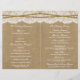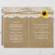 Die Kraft-, Spitzen- und Sonnenblumenkollektion ist ein atemberaubendes Design mit einem hübschen rustikalen Kraft-Papiereffekthintergrund mit einem romantischen Vintagen, weißen Spitzen-Effekt-Trim, der mit einer atemberaubenden Sonnenblume und einem Zwirn vollendet wird. Diese Programme können für Ihren besondere Anlass personalisiert sein und würden die perfekte Vorlage für jede rustikale Hochzeit, Brautparty, Verlobungsfeier, Geburtstagsparty und vieles mehr machen. *Bitte beachten Sie, dass Zazzle nur gedruckte Programme verkauft, sodass dieses Produkt keine echten Spitzen-, Sonnenblumen- oder Weinmaterialien enthält.