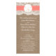 La collection de mariage de plage de sable de corail dollar est un design époustouflant avec un bel arrière - plan rustique effet burlap avec une coupe en dentelle blanche vintage romantique finie avec un dollar de sable étonnant et ruban de corail. Ces programmes peuvent être personnalisés pour votre occasion spéciale et feraient le modèle parfait pour les mariages, douches nuptiales, fêtes de fiançailles, fêtes d'anniversaire et bien plus encore. *Veuillez noter que Zazzle ne vend que des produits imprimés, de sorte que cet article n'a pas de véritables boucles, dentelles, dollars de sable ou rubans.
