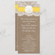 La collection de mariage de plage de sable jaune dollar est un design étonnant avec un bel arrière - plan rustique effet burlap avec une coupe romantique vintage effet dentelle blanche finie avec un étonnant dollar de sable et ruban jaune. Ces programmes peuvent être personnalisés pour votre occasion spéciale et feraient le modèle parfait pour les mariages, douches nuptiales, fêtes de fiançailles, fêtes d'anniversaire et bien plus encore. *Veuillez noter que Zazzle ne vend que des produits imprimés, de sorte que cet article n'a pas de véritables boucles, dentelles, dollars de sable ou rubans.
