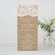 La collection Kraft & dentelle est un design époustouflant qui présente un bel arrière - plan rustique à effet papier Kraft avec un habillage vintage romantique en dentelle blanche. Ces programmes peuvent être personnalisés pour votre occasion spéciale et feraient le modèle parfait pour les mariages rustiques, douches nuptiales, fiançailles, fêtes d'anniversaire et bien plus encore. *Veuillez noter que Zazzle ne vend que des programmes imprimés, de sorte que ces programmes n'ont pas de véritables dentelles.