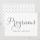 Un joli panneau de programmes de mariage présentant une écriture calligraphique délicate noire et un motif à pois. Cette carte plate sera parfaite pour les mariages et les événements similaires. Disponible dans d'autres couleurs.