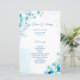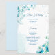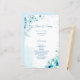 Blue Blossom & Breeze Cette carte de programmes de mariage dégage une élégance douce et apaisante avec son design floral bleu cool. Les fleurs à l'aquarelle s'écoulent gracieusement le long des coins supérieur gauche et inférieur droit, donnant à la carte une sensation délicate et aérée. L’arrière - plan est un subtil lavage de tons bleu pâle, qui rappelle un ciel aquarelle, ce qui améliore l’esthétique douce de la carte. La police de script utilisée pour les noms est à la fois élégante et moderne, tandis que le texte supplémentaire est présenté dans une police serif propre, assurant la lisibilité tout en maintenant la sophistication. Idéale pour un mariage de printemps ou de plage, cette invitation crée une première impression sereine et invitant pour votre journée spéciale. F010