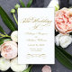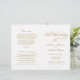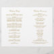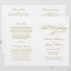 Une grande calligraphie dorée antique écrit "The Wedding Of" dans un script orné et élégant sur ce programme de cérémonie élégant. Des fioritures décoratives dorées chaudes encadrent le design sur un fond blanc épuré pour un look intemporel et formel. Les pages intérieures sont entièrement personnalisables pour votre cortège de mariée, l'ordre de la cérémonie et un message de remerciement personnel sur la couverture arrière. Les programmes sont imprimés sur du papier de poids texte et arrivent à plat, nécessitant un simple pliage au centre.