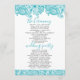 Programmes de mariage, Cérémonie et mariage-Pink détails du programme. Dentelle de cachemire vintage bleu turquoise.