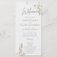 Créez une première impression époustouflante avec ce programme de mariage simple et élégant. Doté de délicats accents floraux et d'un design moderne et minimaliste, ce programme est parfait pour les couples qui aiment l'élégance sobre. Il offre une belle façon de guider vos invités à travers la cérémonie tout en ajoutant une touche de sophistication à votre journée spéciale. Entièrement personnalisable, vous pouvez ajouter votre propre texte, choisir parmi différentes options de police, et le rendre unique à vous. Ce programme sert non seulement de pièce fonctionnelle, mais aussi de belle tenue pour le jour de votre mariage.