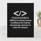 Programmier Coding Developer Programmer Card Original Design von Nisha Prabhu. Mit dieser lebendigen Programmerkarte können Sie Ihre Leidenschaft für das Programmieren entfalten! Feiern Sie die Kunst des Programmierens mit einem Design, das Kreativität und Innovation verkörpert. Ob Sie ein erfahrener Entwickler oder ein angehender Programmierer sind, diese Karte spricht für Ihre Reise. Eine moderne Ästhetik, die die dynamische Welt der Technologie widerspiegelt. Perfekte Motivation für das tägliche Programmieren von Abenteuern! Ideal für das Teilen von Programmierleistungen, Geburtstagswünsche oder einfach nur eine Notiz an andere Technikfreunde. Treten Sie der Entwicklergemeinde bei und ließ Ihre Kreativität durch jede Codezeile. Nimm heute deine Programmerkarte und verbreite die Liebe zum Programmieren!