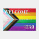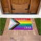 Dieses freundliche Doormat verfügt über eine schöne Progress Pride LGBT Regenbogenflagge mit einem Hintergrund für Strandfotografie. Die Regenbogenflagge ist ein Symbol für den LGBT-Stolz und diese Türmatte ist eine großartige Möglichkeit, Ihre Unterstützung für die Gemeinschaft zu zeigen.