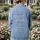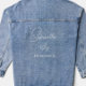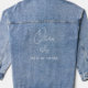 Vous cherchez un cadeau chic, tendance, mais simple pour votre femme d'honneur et demoiselle d'honneur? Ces vestes en jean denim modernes sont un cadeau pratique qu'ils peuvent utiliser même après votre mariage ! Tout le texte, y compris les noms de titre et de script, peut être modifié. Vous pouvez modifier le titre pour s'adapter à votre fête de mariage ! (ex., la servante d'honneur, la maîtresse d'honneur, la fille aux fleurs, la mère de l'épouse, etc.)