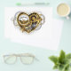 Coeur steampunk mécanique, volumétrique, avec manomètre, acier et or sur arrière - plan blanc. Style Steampunk.