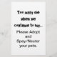 Trop de morts...Adoptez des dépliants Spay/Neuter : La surpopulation des animaux de compagnie est un problème sérieux dans le monde entier. Est-ce que ça vous brise le coeur de voir des chiens, des chats et d'autres animaux élevés et vendus dans les magasins d'animaux quand il y a tant d'animaux dans les refuges pour animaux qui ont besoin de maisons? Est-ce que ça vous brise le coeur de voir naître des chiots et des chatons non désirés à cause de gens qui ne voulaient pas se donner la peine d'avoir la maman et papa chiens, chats et autres animaux stérilisés et stérilisés ? Eh bien ce design est pour vous ! Le texte est "Trop meurent quand nous continuons à acheter... S'il vous plaît Adoptez et Spay/Neuter vos animaux de compagnie.".