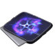 Ce coque d'ordinateur portable est doté de mon image fractale violette et bleue d'une étoile à cinq branches dans un tourbillon de couleur environnant ; le tout sur un arrière - plan sombre.