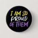 I am so proud of them button written in yellow, white, and purple on black for nonbinary parents. Show your pride for your non-binary child with the non binary colors for a mom or dad.