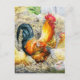 Ein Barkeeper-Hahn, der von einem Bienenstock seiner Dame gerahmt ist, hennt und heut sich um ihn herum. Die sanften Gelbtöne und Grautöne bringen den farbenfrohen Hahn ins Zentrum der Aufmerksamkeit, genau dort, wo der stolze Vogel gerne ist. Dies ist ein Mischmedium, das in Ölpastellfarben und farbigem Bleistift zeichne. von Amanda Diehl, Paxdomino Designs