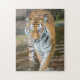 Atemberaubender, erwachsener Tiger, der durch das Wasser tritt.