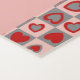 Rote Herzformen in verschiedenen Richtungen auf einem karierten Muster abwechselnd pfirsichrosa und graue Quadrate schaffen ein hübsches und lustiges Design auf dieser Yogamatte. Fügen Sie einen Namen für ein personalisiertes Geschenk für jemanden besonderen.