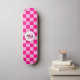Markierte hellrosa geometrische Retro Monogram Skateboard. Personalisieren Sie Sportgeräte mit Ihrem persönlichen Initial und Namen. Cooles Retro-Schachbrett geometrisches quadratisches Muster Design heiß rosa.