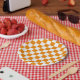 Fügen Sie dem Raum eine Touch Kreativität hinzu, mit diesem spielerisch karierten Weiß- und Mandarine-Muster. Das geometrische Design verleiht dem Gast einen modernen und gleichzeitig skurrilen Charme, der sich perfekt für jene eignet, die eine kühne und künstlerische Ästhetik Liebe suchen.
