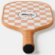 Geprüftes pfirsichweißes geometrisches Retro Monogram Pickleball Paddel. Personalisieren Sie Ihre individuelle Eingabe und Ihren eigenen Namen. Cooles, hintergrundgezogenes geometrisches Quadratmuster. Vintages Fliesen modernes Schachbrett Design.
