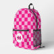 Checked Quadrate Hot rosa hellrosa Geometrie Monogramm gedruckter Rucksack. Coole Mode-Accessoires-Tasche für sie. Cooles geometrisches rechteckiges Muster in Retro. Vintage Kacheln heiß rosa modernes Schachbrett. Erstellen Sie einen einzigartigen und personalisierten Rucksack mit einer benutzerdefinierten Touch! Modernes Monogramm mit Ihrem Initial und Ihrem Namen für diesen persönlichen Flair.