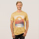 This t-shirt features a mountain sunrise image with a Biblical quote. The quote is Psalms 118:24. The Psalm quote is in text before some mountains. This is the day the Lord has made; We will rejoice and be glad in it. The text Psalm 118:24 is under the quote. The picture is a digital art image of a large golden sun and stylized mountain silhouettes. The t-shirt is a men's Tri-Blend T-Shirt.