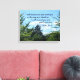 Bibelverse: "Ich werde dich unterweisen und dir beibringen, wie du gehen solltest; ich werde dir raten und über dich wachen. Psalm 32:8" Hintergrund ist ein blauer Himmel mit weißen Wolken, gerahmt von grünen Baumgipfeln. Schönes Kunstwerk für den Absolvent oder für jeden, der auf einem neuen Weg im Leben beginnt.