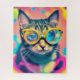 Tauchen Sie mit unserer "Psychedelic Acid Trip Kitty Cat Postcard" in eine Welt lebhafter Fantasie ein. Dieses faszinierende Stück zeigt eine Katze, die mit einer abstrakten Säure-Trip-Kulisse die blaue und orangefarbene Brille auffällt und Sie einlädt, die Tiefen der surrealen Schönheit zu erkunden.
