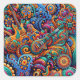 Psychedelic Batik Gitarre Kunstfarbenfrohe Retro M Quadratischer Aufkleber