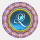 PSYCHEDELIC CIRCLES MONOGRAMM-blaue Turquase rosa Runder Aufkleber