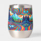 Ai Art zeigt einen farbenfrohen Disccours in den Bergen und Pinien in Blau, Orange und Grün.