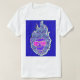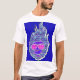 Dieses auffällige T‑Shirt zeigt ein psychedelisches Gesicht mit flammigen Haaren und Sonnenbrille, gestaltet in intensiven Blau‑, Pink‑ und Türkistönen mit einer modernen Mosaik‑Textur.