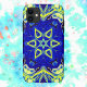 Dieses psychedelische Kaleidoskop-Blume-Design ist blau und gelb. Lebhafte trippige Visuals für den modernen Hippie oder für jeden, der Lieben in funky Farben hat!