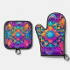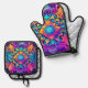 Psychedelic Mandala Design Ofenhandschuh & Topflappen-Set