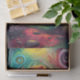 Dieses Psychedelische Puschrooms Dekoupage Tissue bricht mit lebhaften Farben und einer trendigen Atmosphäre aus. Die in fett schwarz umrissenen Pilze sind in lebhaften Farbtönen gehalten und mit feinen Mustern versehen. Die wirbelnden Hintergründe verbessern das Design und fügen eine skurrile und trippige Touch hinzu. Ideal für die Erstellung eklektischer und auffälliger Entsprechungsprojekte.