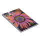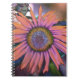 Das Universum im Herzen einer Sonnenblume, ein einzigartiges Mischmedienkunstwerk von Sheryl Karas auf einem ausgekleideten Tagebuch oder Notizbuch für verschiedene Zwecke. Rosa und gelbe Farben mit blau.