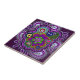 Eine Kachel mit einem farbenfrohen psychedelischen Design mit abstrakten Blume, einem Herz und einem Friedenszeichen. Es ist von einem lila Pisley umgeben.