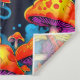 Farbenfrohe trippige, psychedelische Pilze in blauen, orangen und gelben Tapisserien verleihen Ihrem Zimmer einen einzigartigen und lebendigen Look.