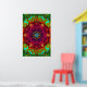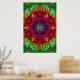 Eine helle, farbenfrohe Mandala, basierend auf der Geometrie eines sechsseitigen Hexagramms, mit einem psychedelischen Flair.