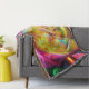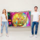 Ein faszinierendes digitales Bild einer Rose, die mit psychedelischer Energie und Regenbogenfarben platzt. Die lebhaften rosa Blütenblätter umwickeln einen goldenen Kern und bilden ein surreales Blumenzentrum.