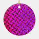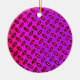 Ein sich wiederholendes Muster breitet sich über einen lila und rosa psychedelischen Hintergrund auf diesem runden Ornament aus. Spin es für einen lustigen hypnotischen Effekt!