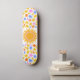 Psychedelisches vibe Skateboard mit goldenem Sonnenbrand und farbenfrohen Sternen. Ein lebendiges, üppiges Muster.