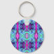 Psychedelisches Grün- und Blauer Hibiskus-Muster Schlüsselanhänger