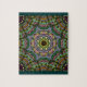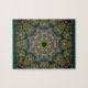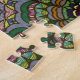 Ein Puzzle mit einem Grün, einem Blau und lila einem Kaleidoskopmuster.
