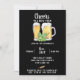 Verre à bière peint, tasse, houblon et blé sur arrière - plan noir, Invitation de la fête du Nouvel An. Le dos de la carte est décoré de motif de style pub.
