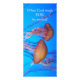 Cette carte montre une photo de deux belles méduses avec leurs longues tentacules qui coulent derrière elles alors qu'elles nagent dans une eau bleue vif. Avec cette photographie se trouve le verset biblique Genèse 1:31 qui dit : "Dieu a vu tout ce qu'il avait fait, et c'était très bon." Sur le dos se trouve la même photo et les mots : "Quand Dieu t'a fait, il a souri." Photo prise par mon fils, David Mann.