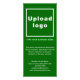 Carte en rack que vous pouvez customiser et utiliser comme matériel marketing pour annoncer votre entreprise ou promouvoir votre marque auprès des clients. Carte en rack avec votre nom d'entreprise pour renforcer la sensibilisation à la marque. La couleur est verte et les couleurs de police sont vert clair et blanc. Pour customiser cette carte, téléchargez votre logo d'entreprise, tapez votre nom d'entreprise ou de société, une description courte et attrayante de votre entreprise, de votre adresse, de votre numéro de téléphone, de votre courrier électronique et de votre site Web ou de votre page de médias sociaux. Veuillez vérifier l'apparence après avoir téléchargé le logo et tapé des textes. Si l'apparence vous plaît, vous pouvez passer votre commande maintenant. Si vous avez besoin de redimensionner et déplacer le logo et les textes pour s'adapter à cette carte rack, veuillez modifier l'outil de conception. Vous pouvez également effectuer d'autres modifications en fonction de vos préférences dans l'outil de conception, comme changer la couleur de la carte à rack, la couleur de la police et le style de police.