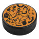 Halloween Skelette Macabre Tanz, Fledermäuse, Hexenkatzen und Grabsteine, alle Elemente zusammengesetzt, um ein spukhaftes Muster zu komponieren. Original vektorgrafik Copyright BluedarkArt.