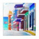 Malerei einer Straße in San Juan, Puerto Rico mit der puertorikanischen Flagge, den bunten Gebäude und den Pflanzen.