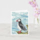 Eine leere Grußkarte mit einem Aquarellbild eines Puffers, der auf einer Klippe steht. Ideal für den Vogelliebhaber in Ihrem Leben!