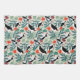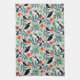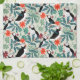Farbenfrohe und lustige Puffin-Muster mit viel üppigem, grünem Laub auf warmen beigen Hintergrund. Lebhafte grüne und orangefarbene Farben.
